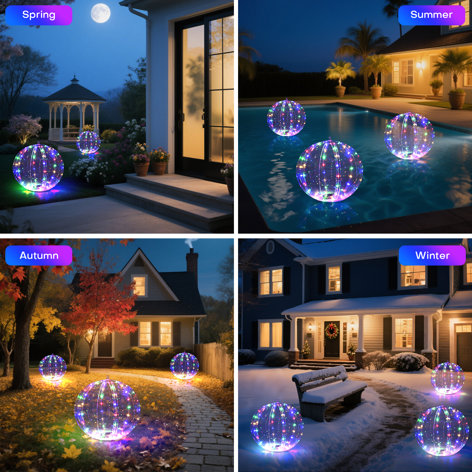 - Beautiful Decorations For Anywhere — The above ground pool lights solar powered are really beautiful, bright enough and 8 lighting modes to switch. The solar lights for above ground pool can float in the swimming pool or be placed anywhere such as pool table, pond, courtyards, parks, yard, patio, trees, lawn, pathway, beach, garden and so on. The light up balls for pool will be a great gift for party wedding summer halloween christmas decorations