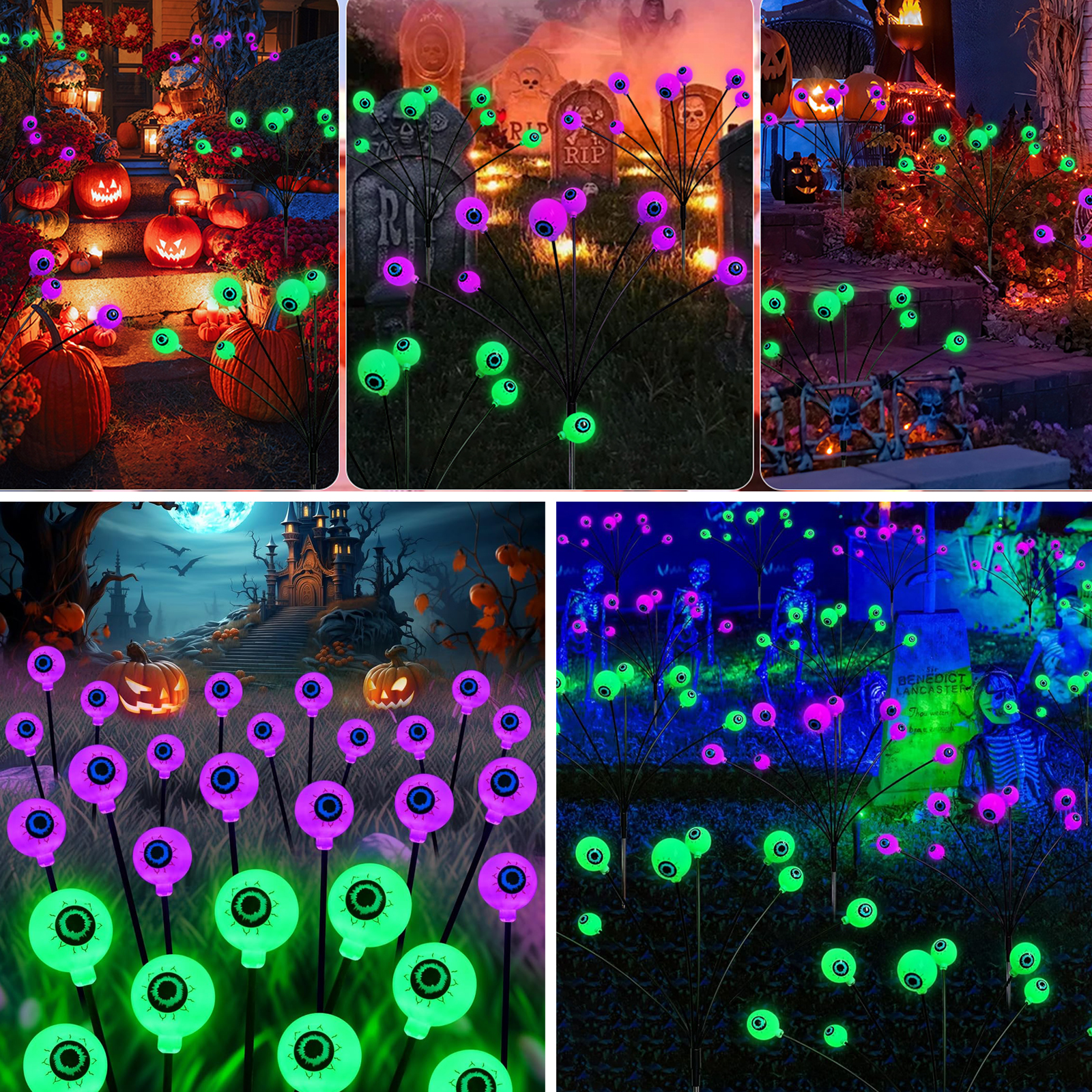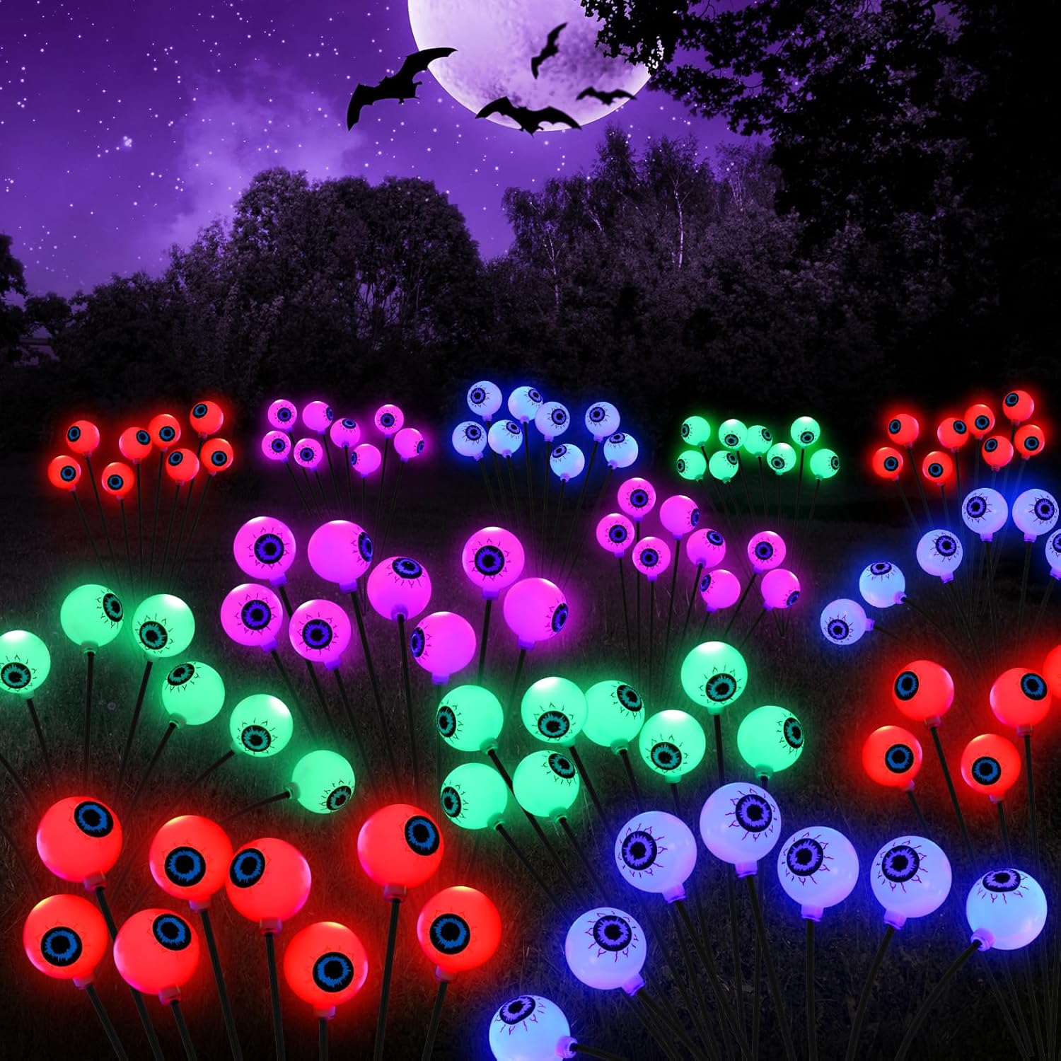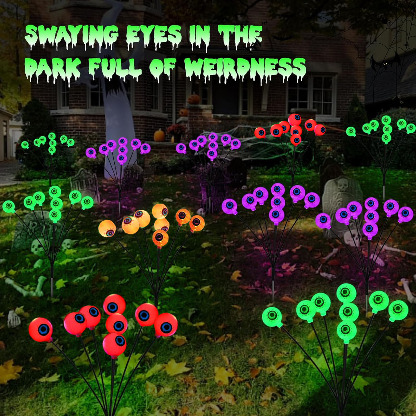 • Perfect Halloween Outdoor Decorations: The scary eyeball swaying lights are IP65 waterproof and 4 colors designed (green+red+purple+orange) , special for outdoor halloween decorations, perfect for garden, pathway, backyard, front yard, or patio and creating a scary ambiance for trick-or-treaters, ideal addition to your halloween spooky setup