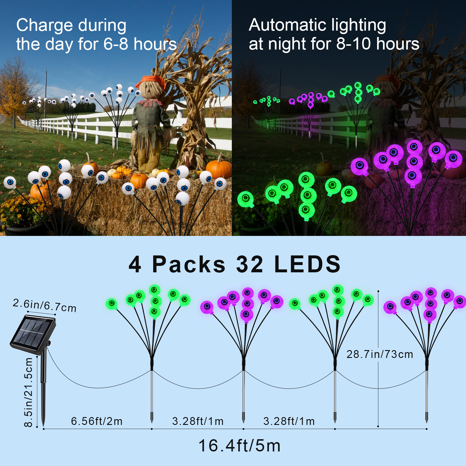 NewKoor Solar Eyeball Lights for Halloween Decorations-Green/Purple/Red/Orange