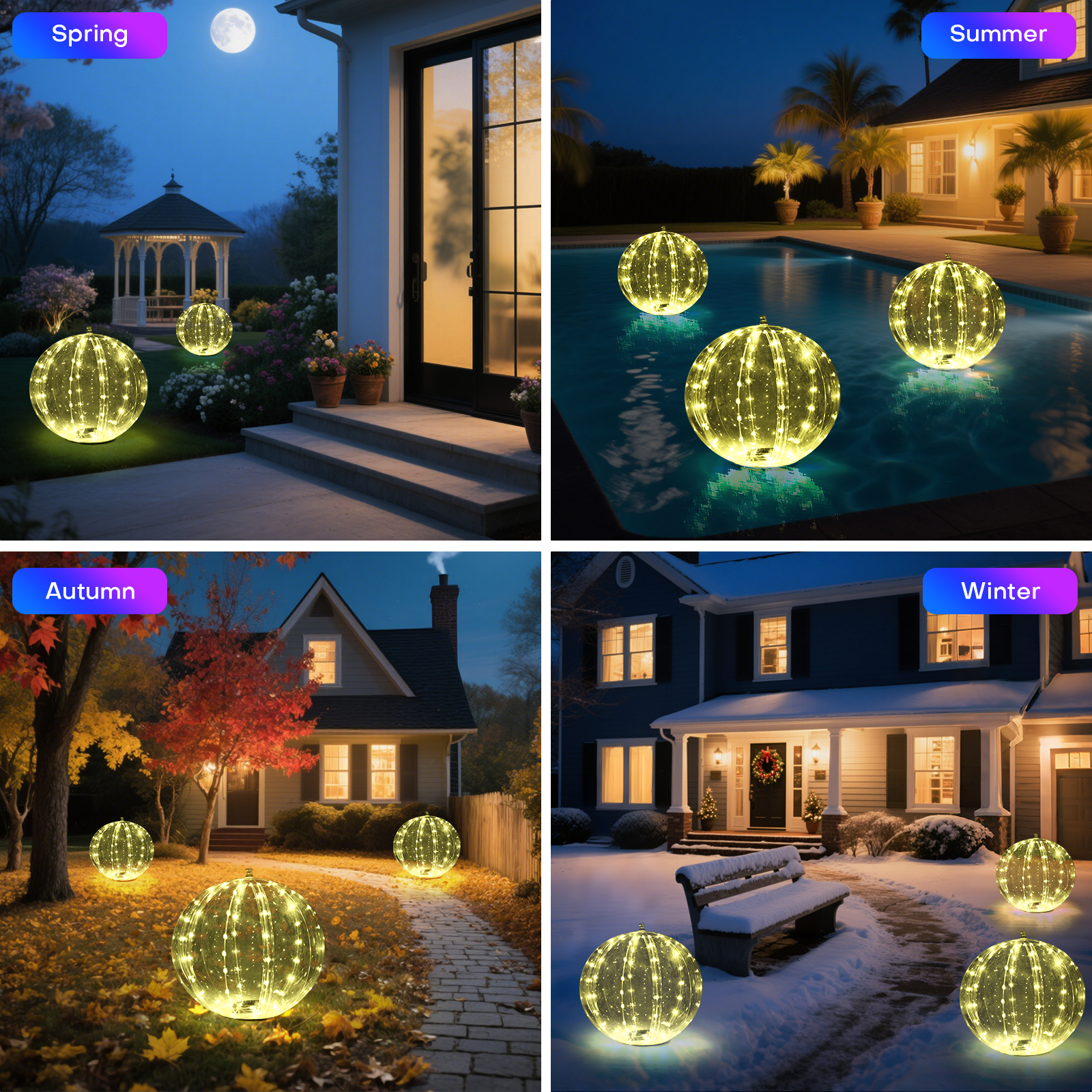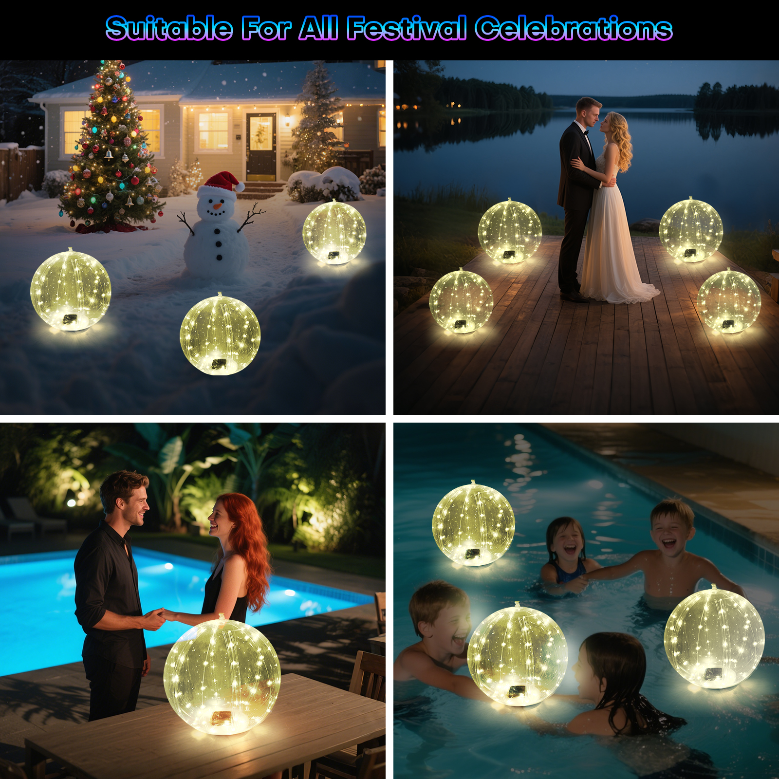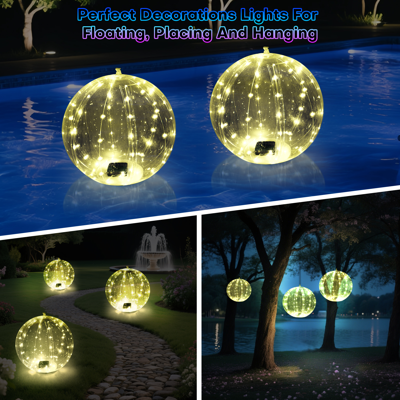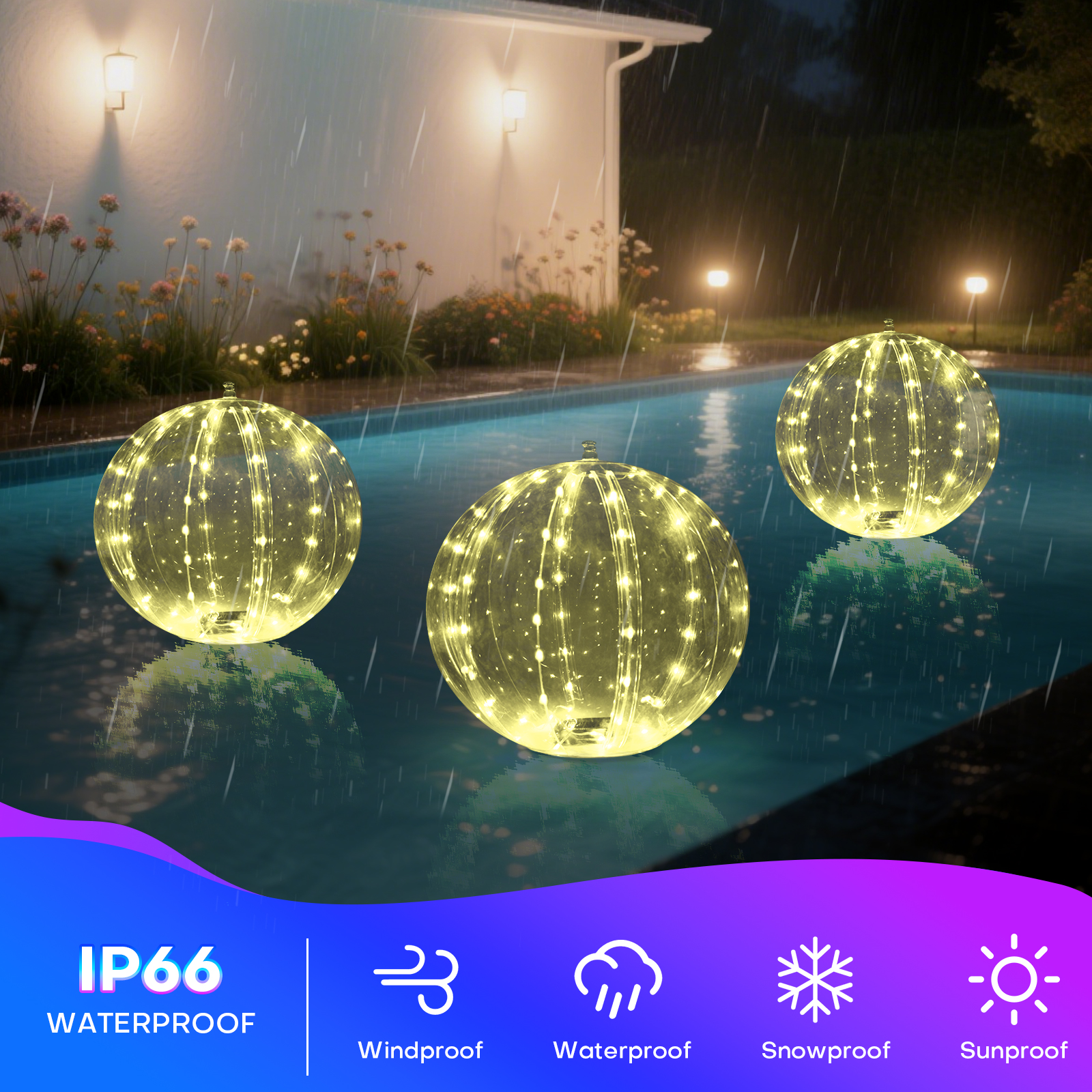 - IP66 Waterproof And Floatable — Our floating solar lights adopt IP66 waterproof technology, fully waterproof and dust-protected, The bottoms of the glow balls for pool are flat, so they can float in a pool or hanging anywhere else. The 14 inch pool lights for above ground pools are inflatable that make the pool light floating on water, the floating pool light create you a warm and romantic atmosphere in your pool