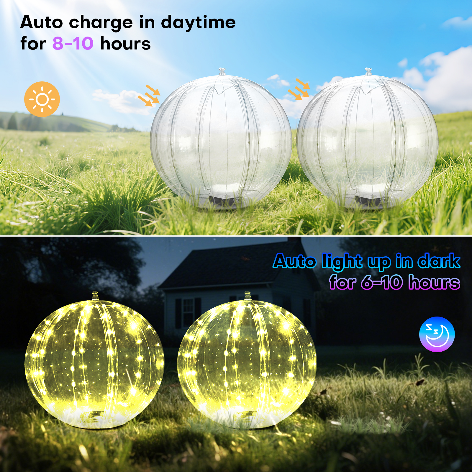 Solar Power Pool Floating Inflatable Decoration Lights 2 Pack 14 Inch 8 Modes Waterproof Solar Ball Lights for Patio Yard Garden Lawn Christmas Decor Ornaments, Warm White