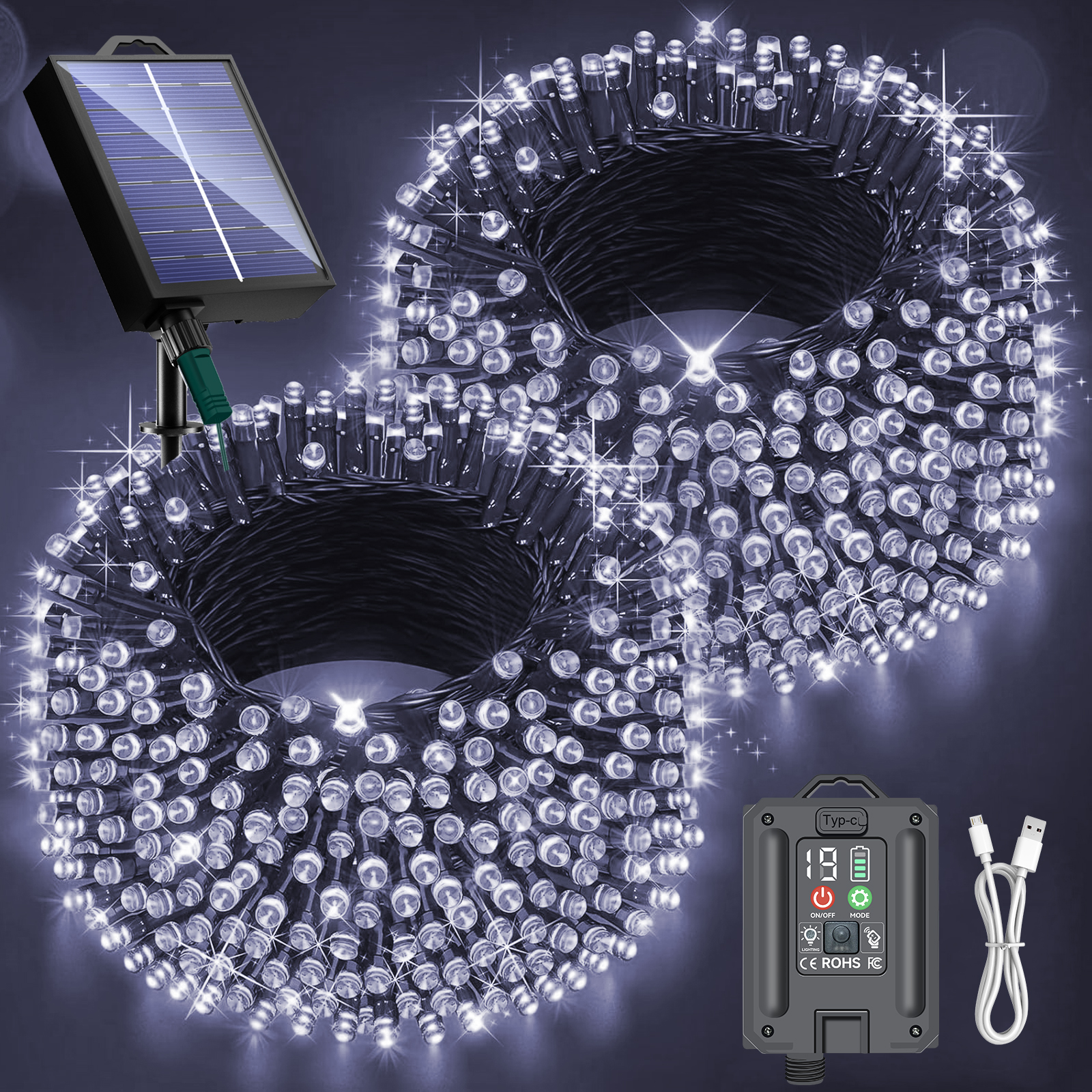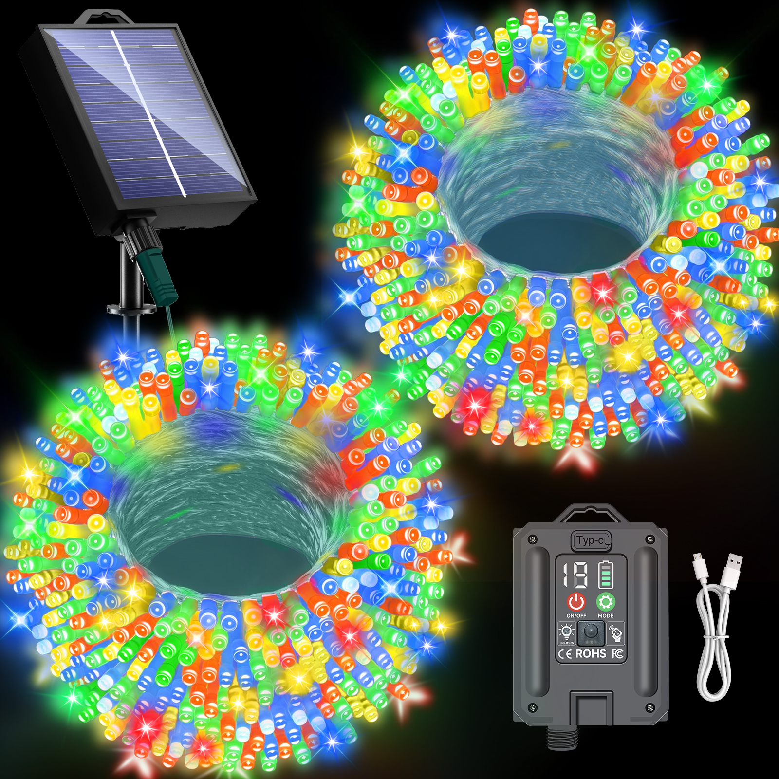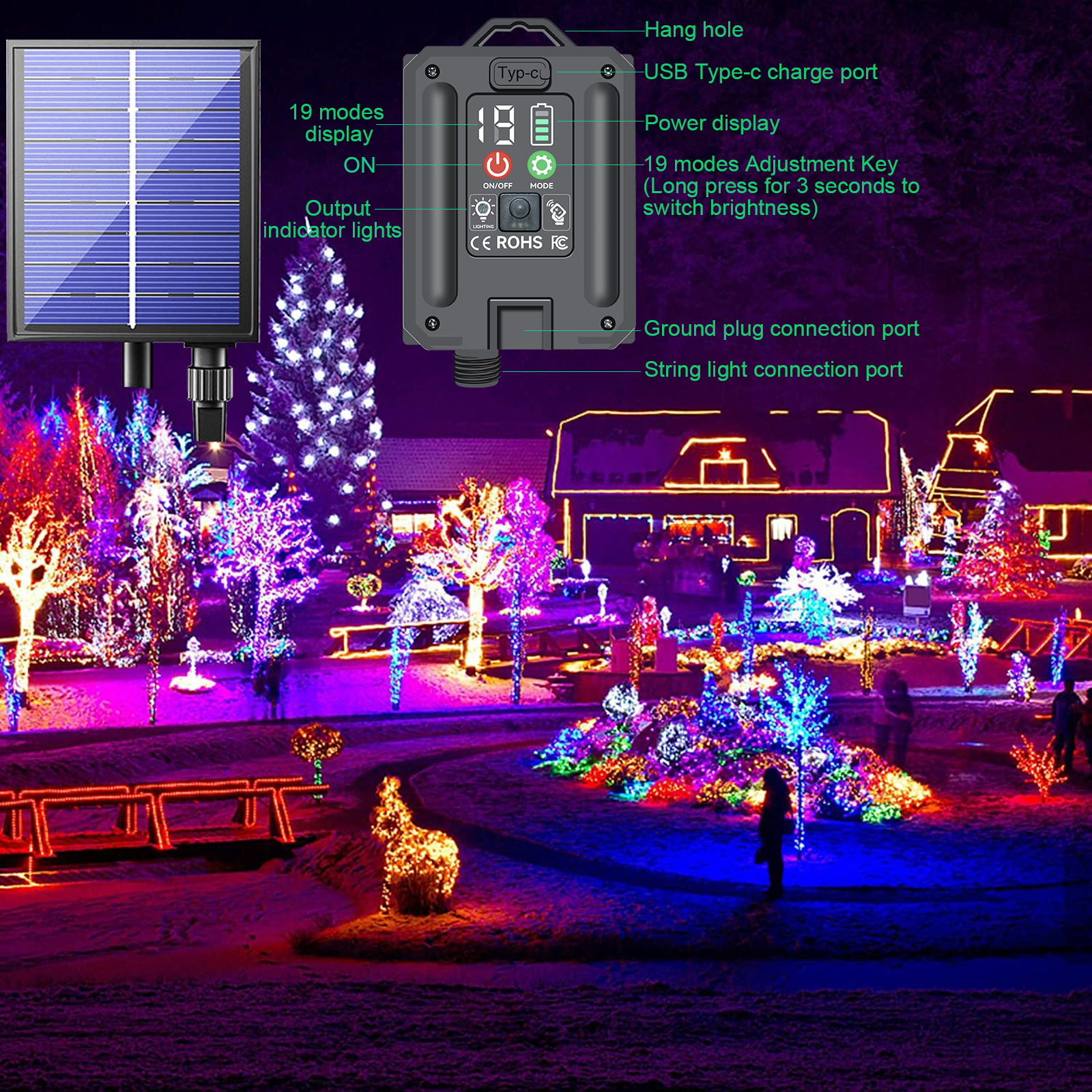 - Dual Charging Methods Suitable For Outdoor And Indoor: The solar christmas string lights outdoor can be charged by dual charging options: solar power and USB Type-c(1.5 hour full charge), This feature solves the problem of charging during cloudy, rainy, foggy weather, So the multicolored christmas lights is a great decoration choice both for Indoor and outdoor