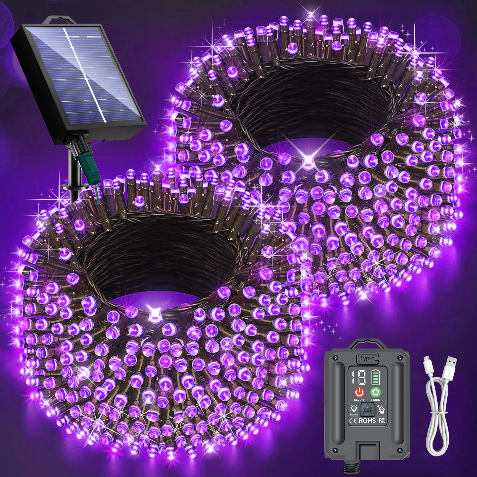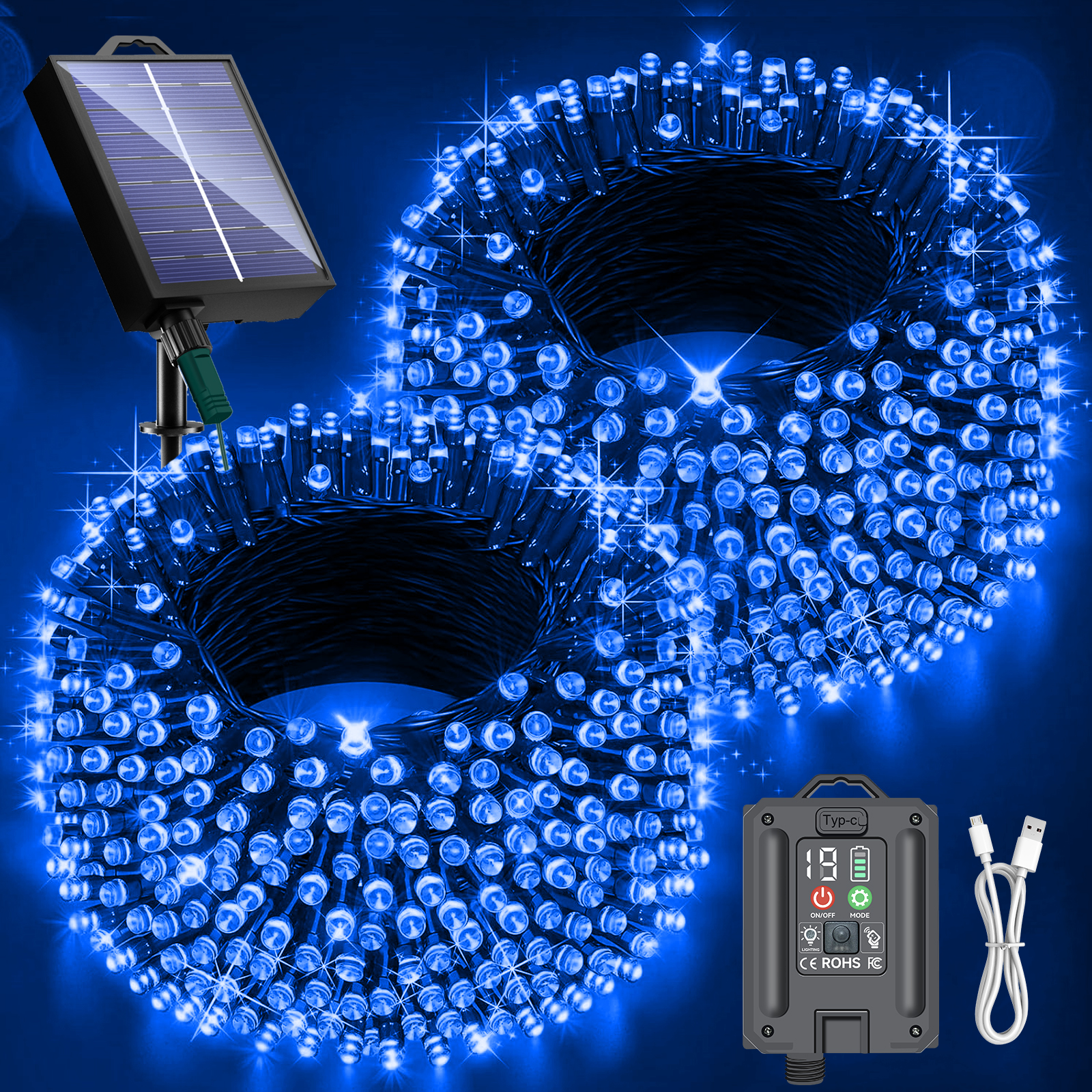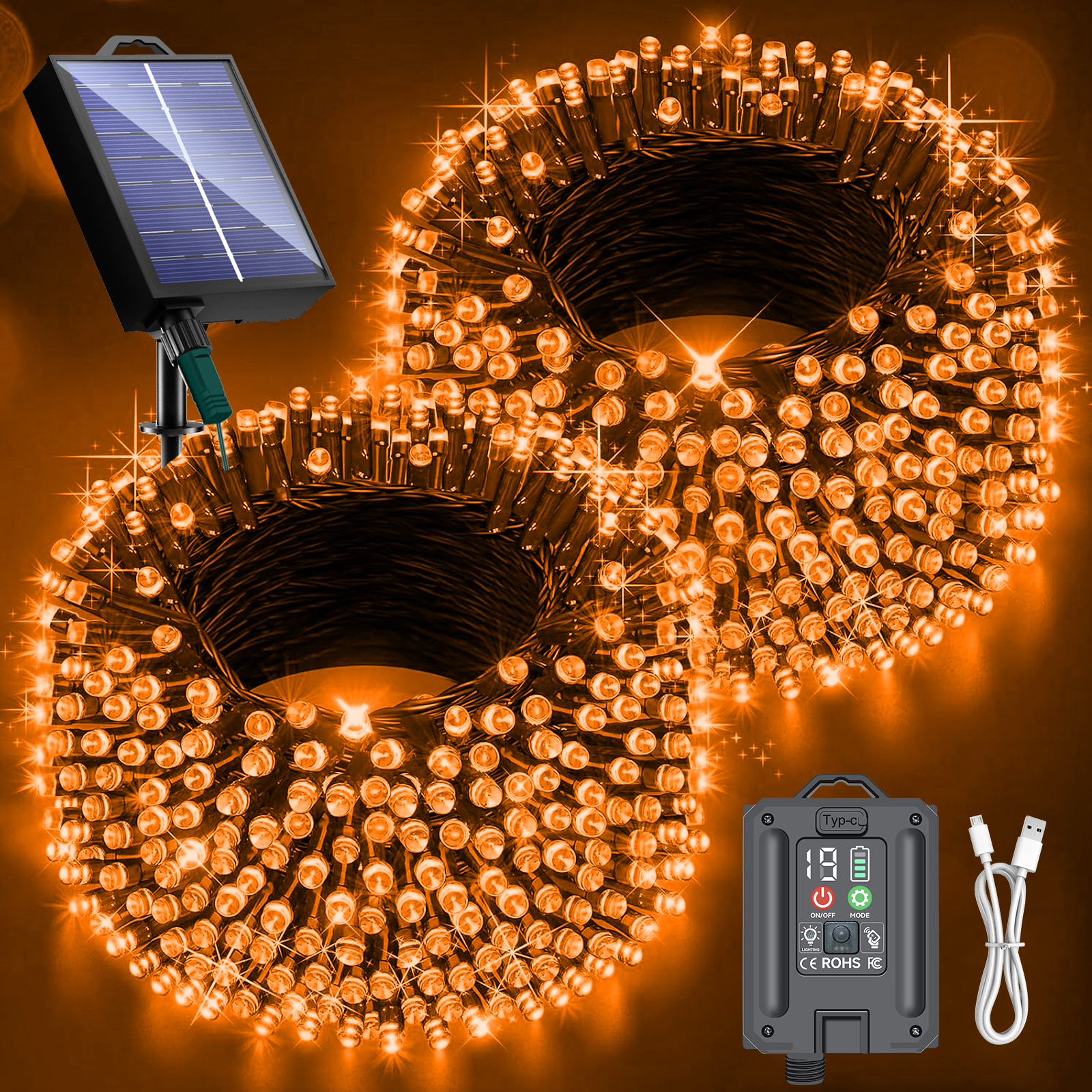 - Dual Charging Methods Suitable For Outdoor And Indoor: The solar christmas string lights outdoor can be charged by dual charging options: solar power and USB Type-c(1.5 hour full charge), This feature solves the problem of charging during cloudy, rainy, foggy weather, So the multicolored christmas lights is a great decoration choice both for Indoor and outdoor
